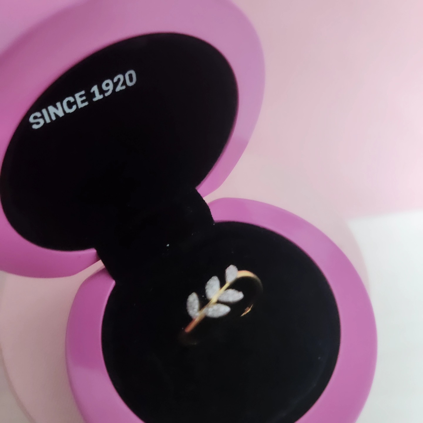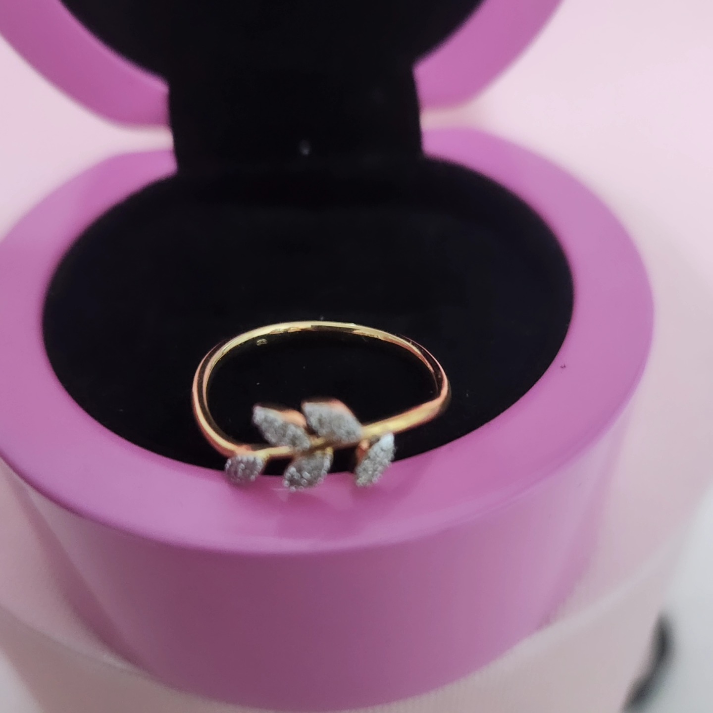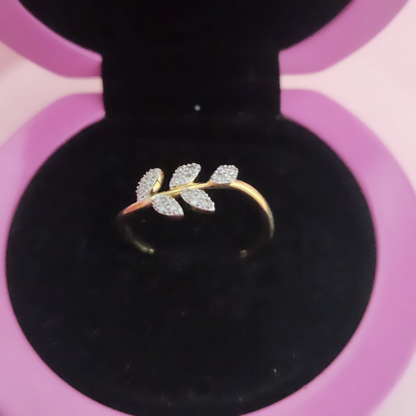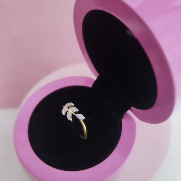 Con un diseño que imita la forma de una hoja, este anillo de pedida cuenta con una banda de oro amarillo y diamantes para aportar un toque de glamour.