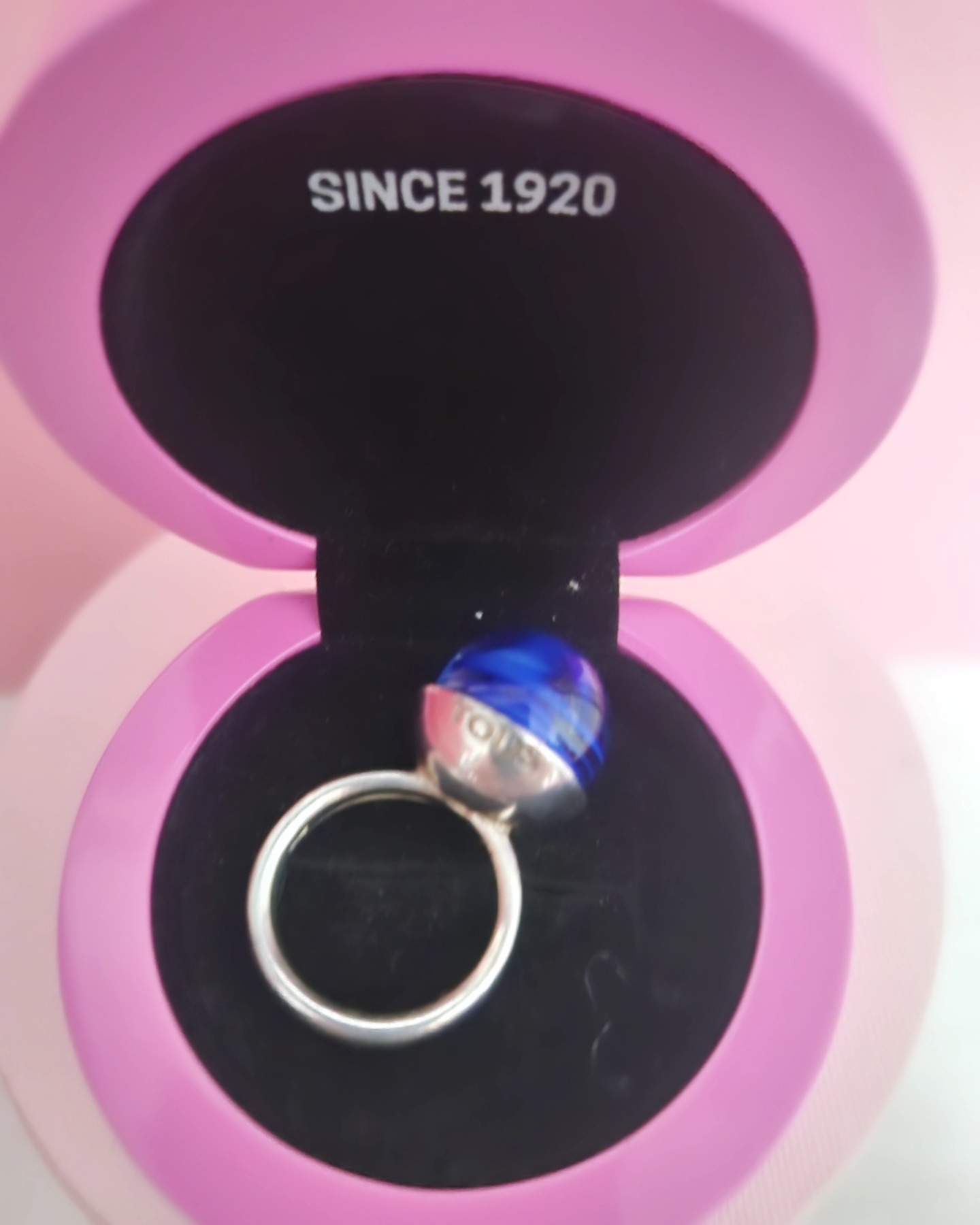 Anillo plata bola murano azul tous.