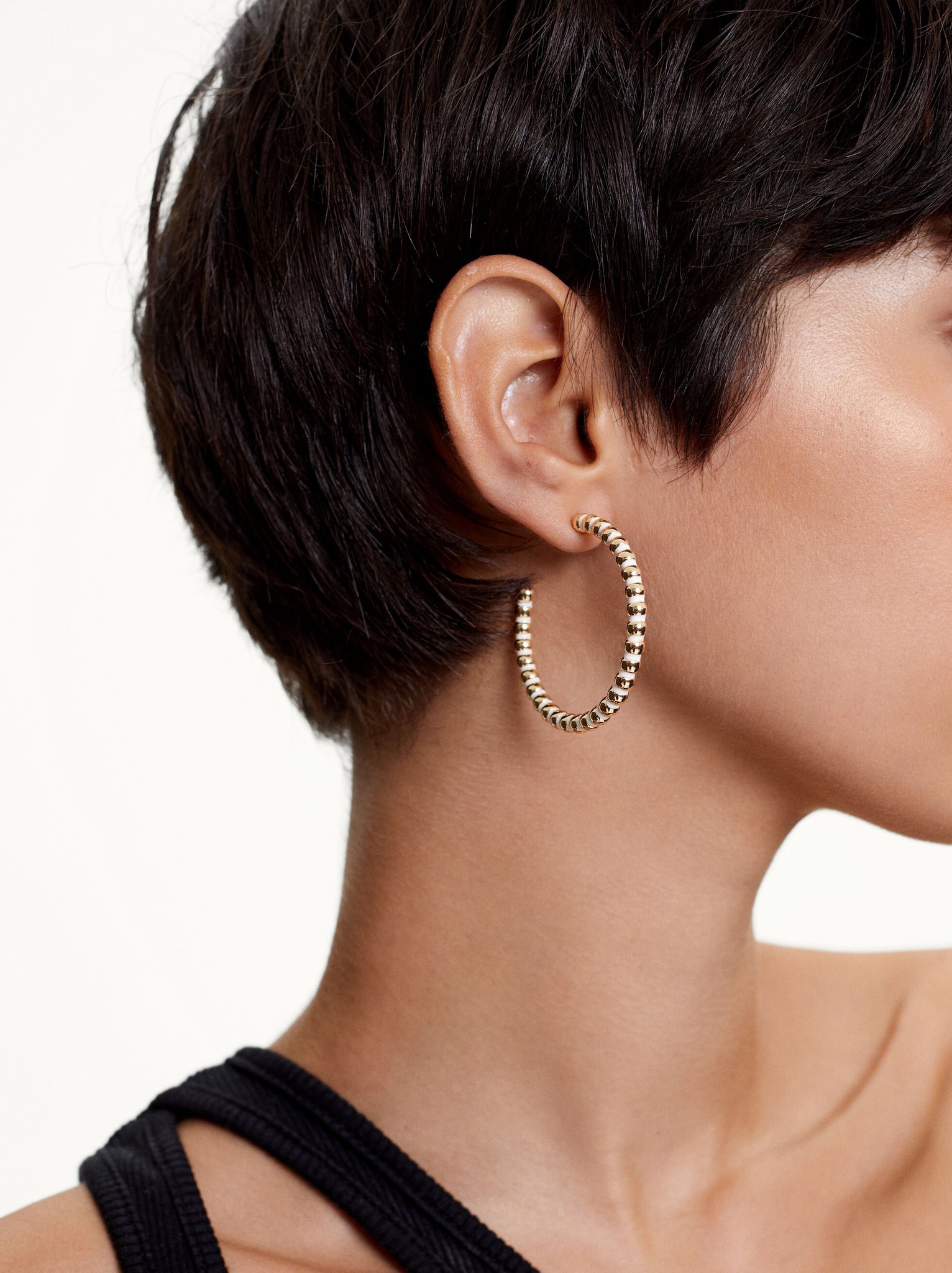 Preciosas argollas la combinación del blanco con el dorado queda genial.