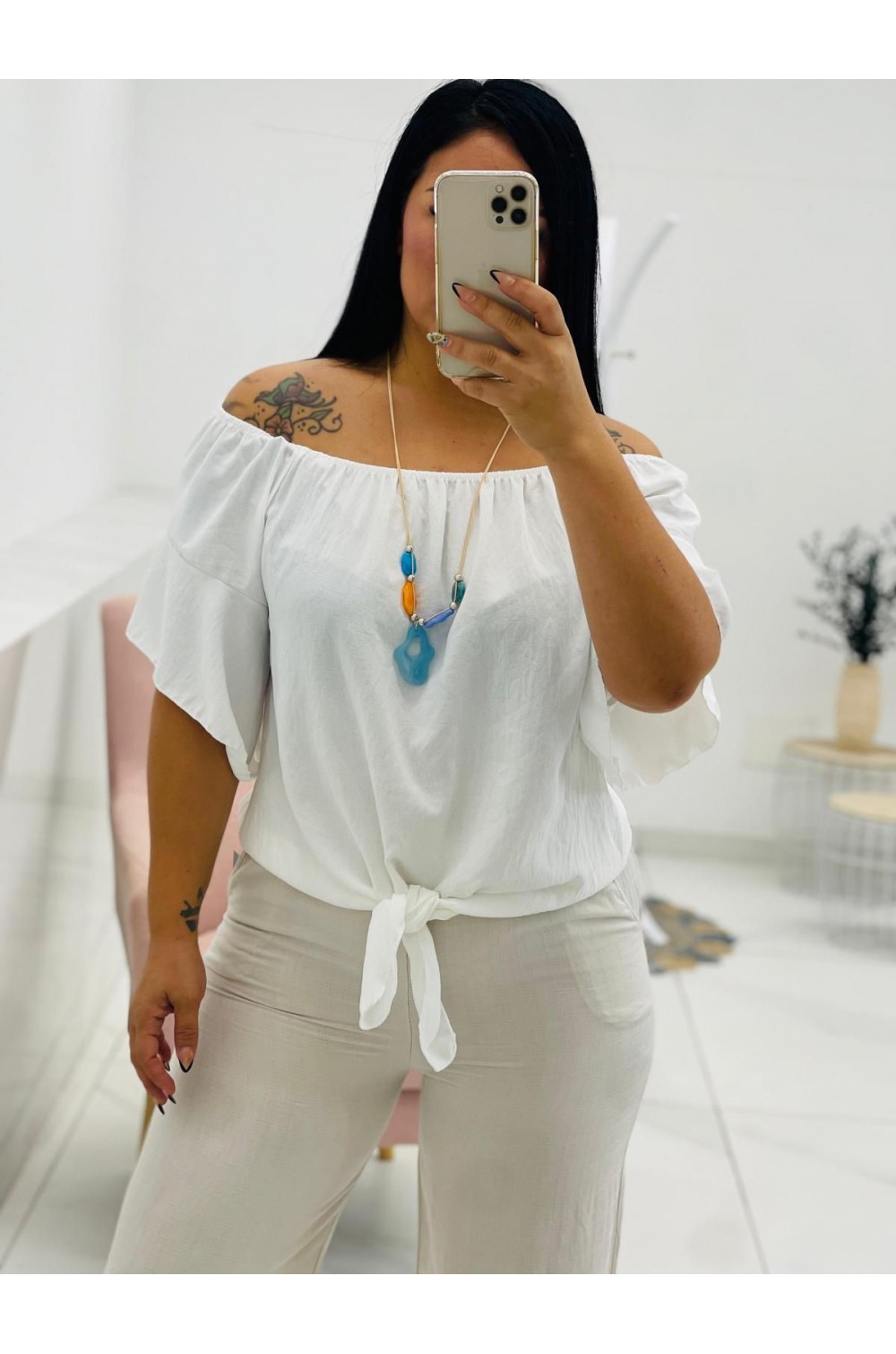 Z/Blusa blanca con collar