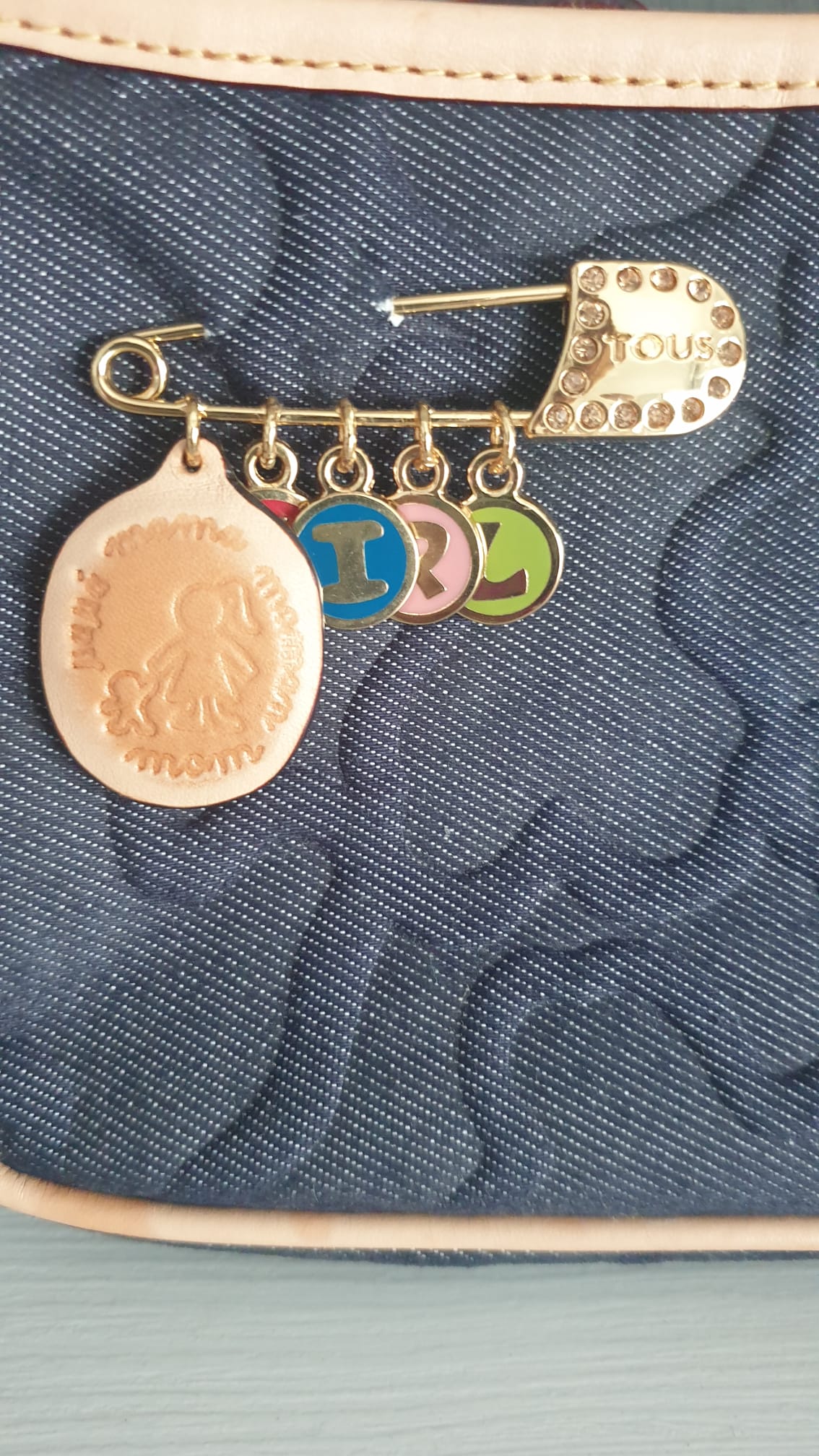 BOLSO VAQUERO NIÑA COM IMPERDIBLE DORADO Y LETRAS GIRL ESMALTADA EN COLORES.