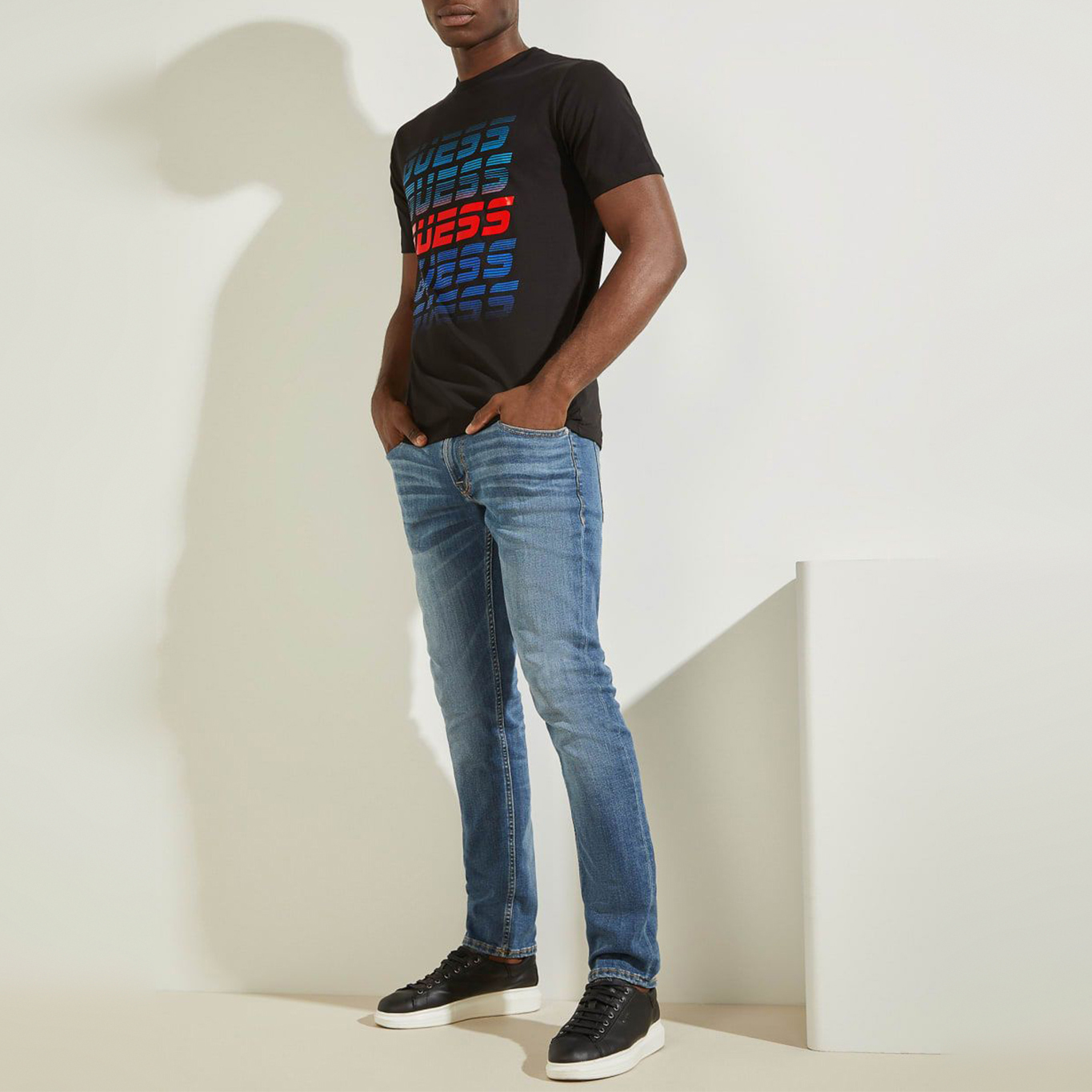 ZZ CAMISETA GUESS NEGRA LOGO MULTICOLOR TALLA M