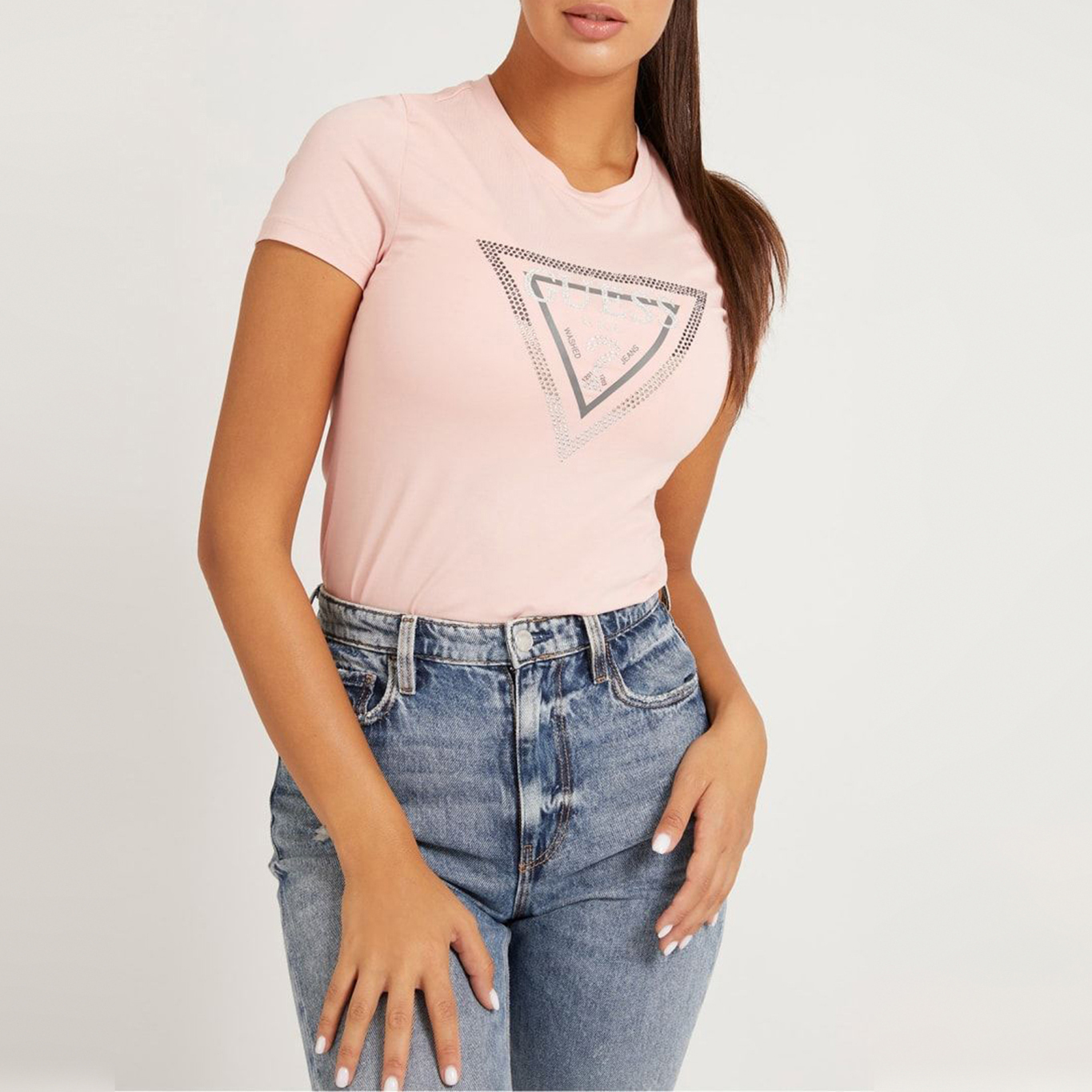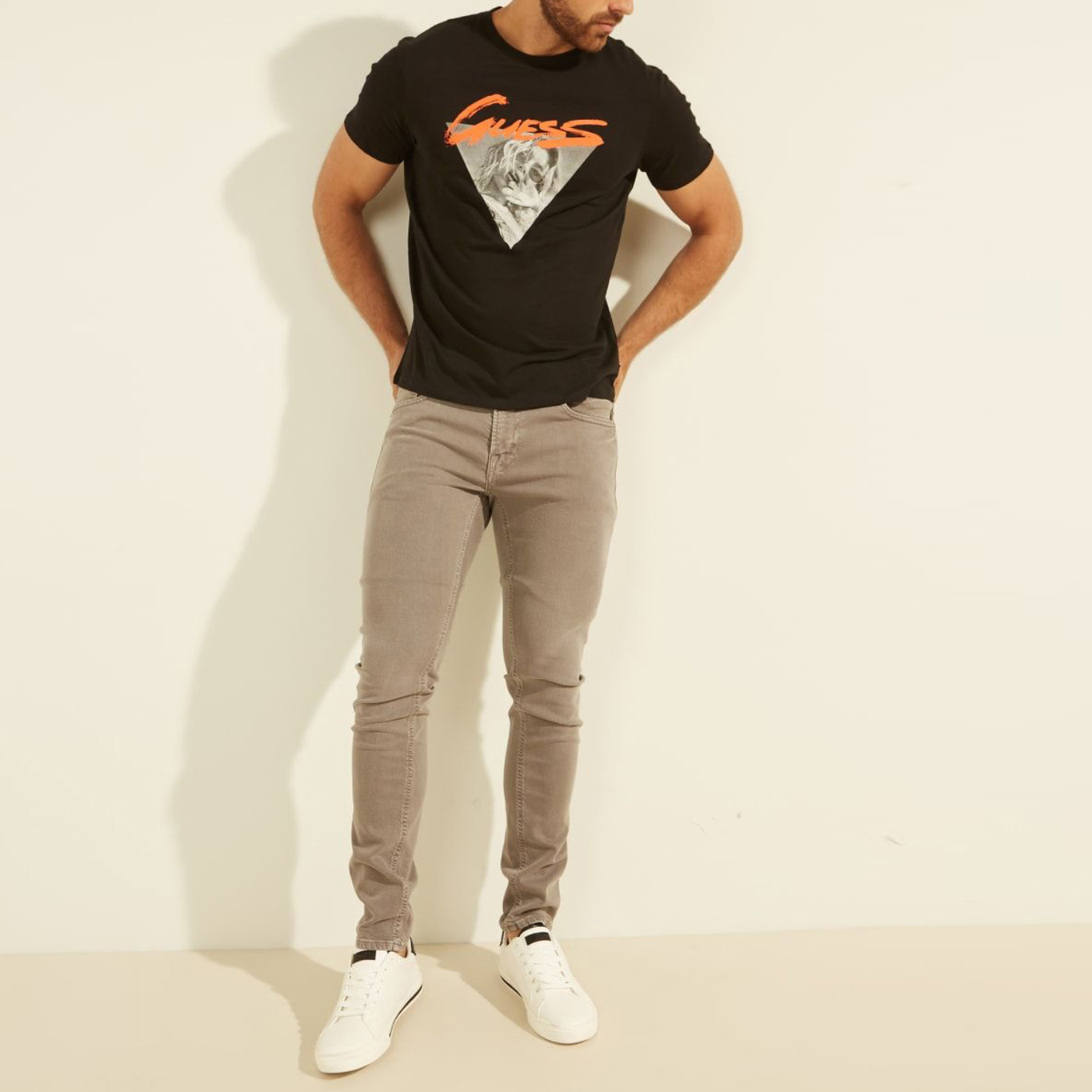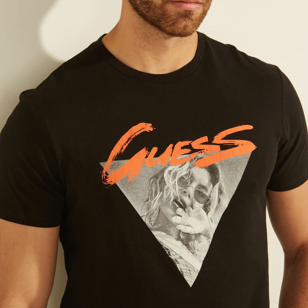 CAMISETA GUESS NEGRA LOGO NARANJA-TALLA S