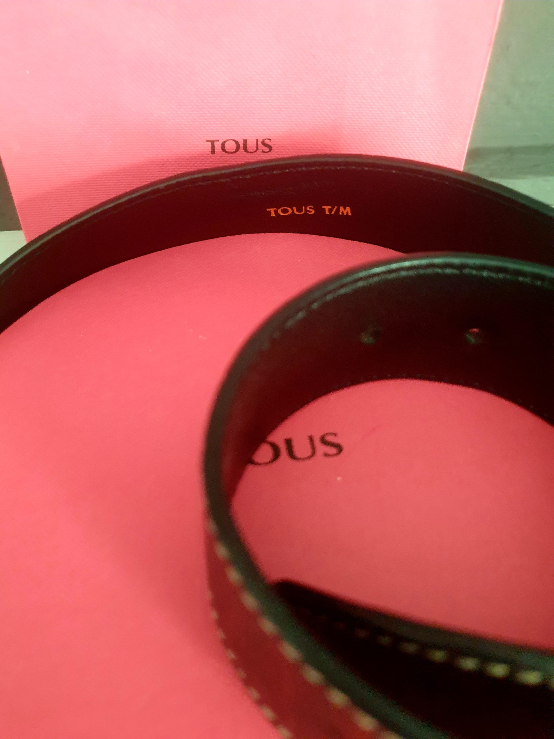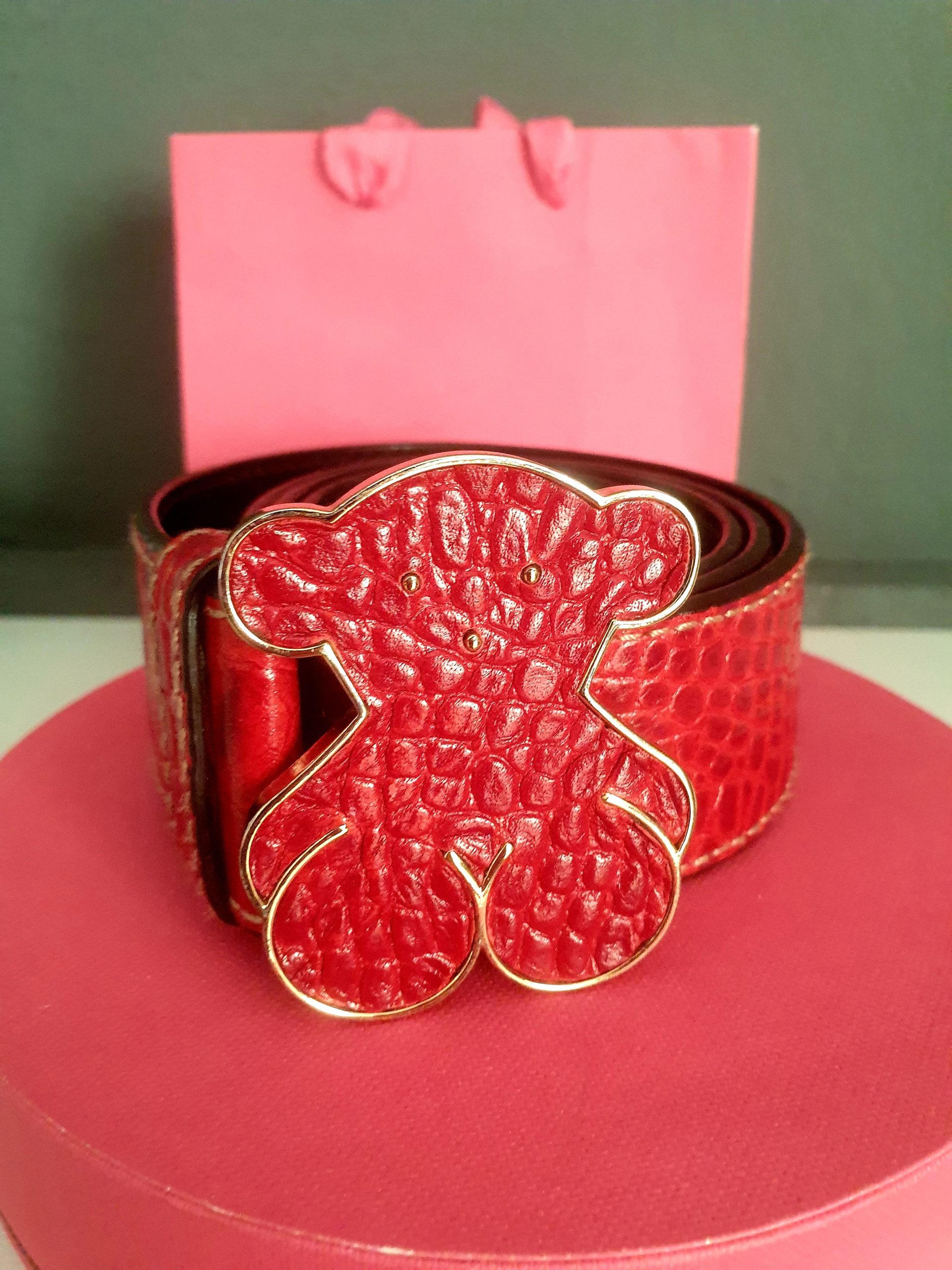Cinturon piel rojo tous con el oso emblemático de la marca.