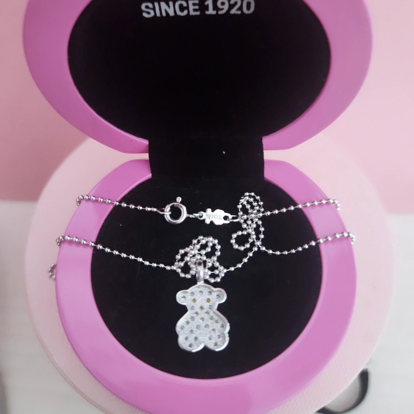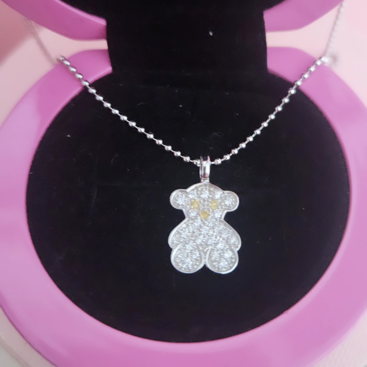 Colgante TOUS Sweet Dolls Diamonds de oro blanco de 18kt y diamantes. Peso total: 0,55ct. Tamaño del oso: 125mm. Este artículo no incluye la cadena.
