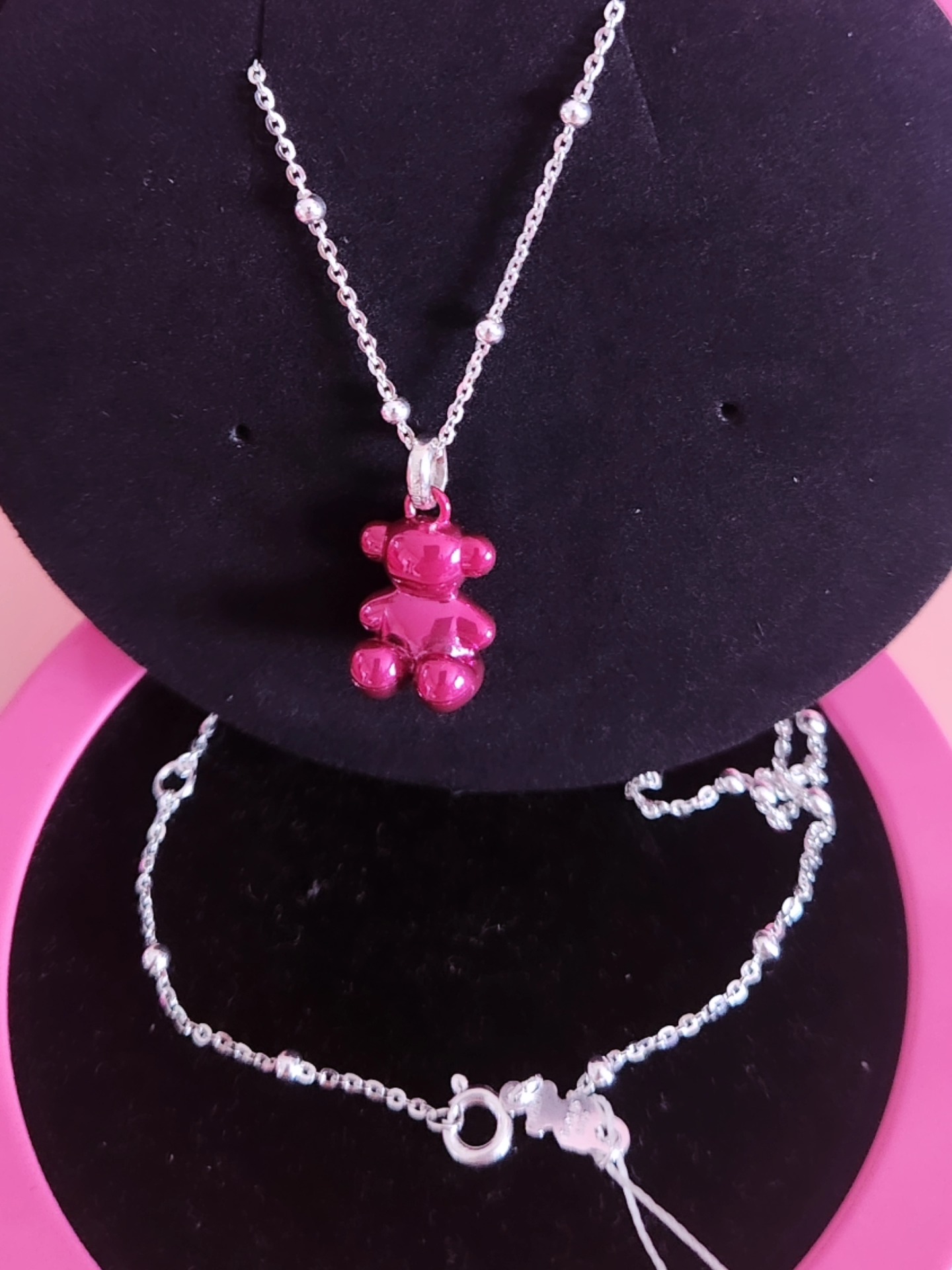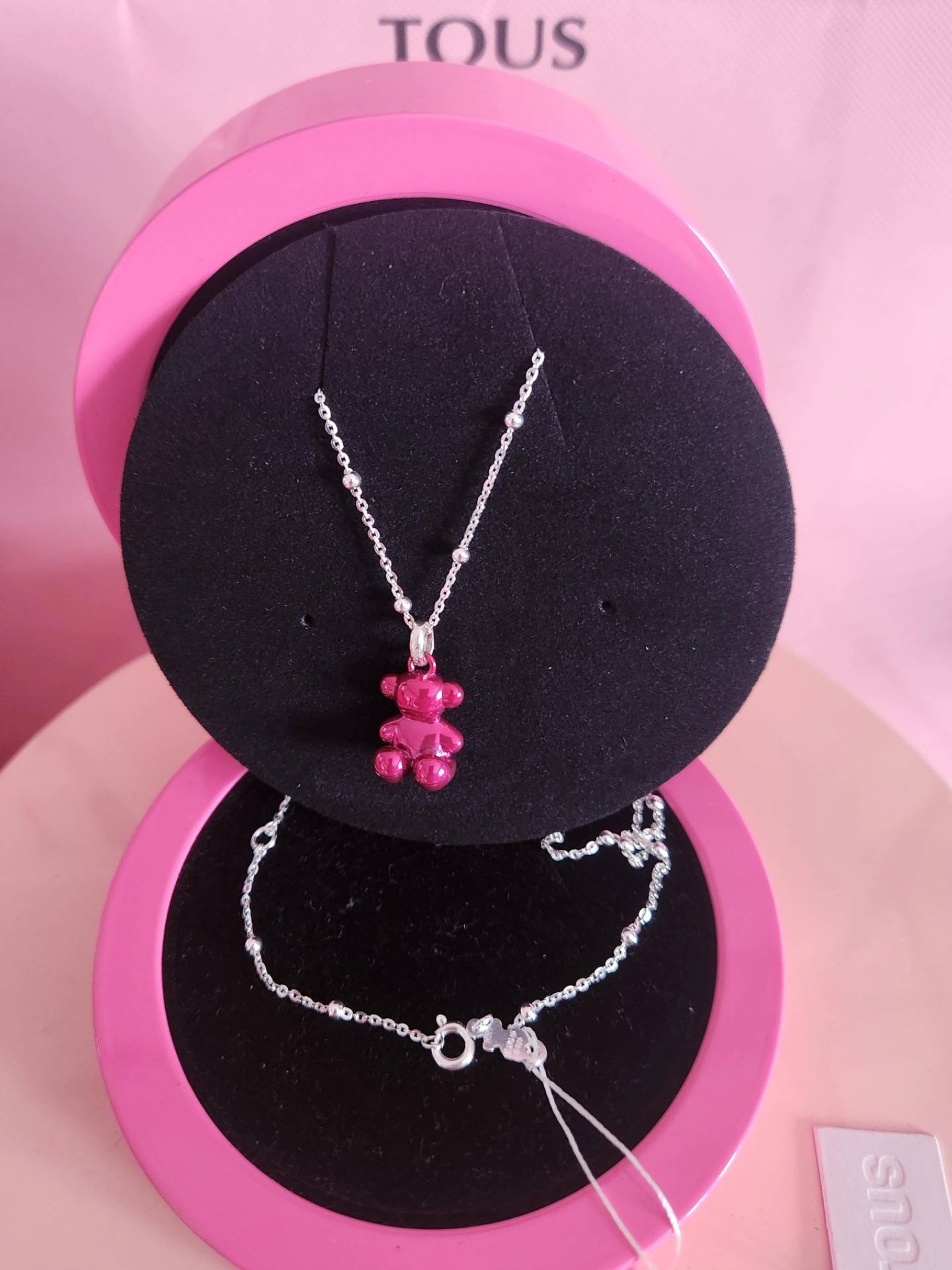Cadena de plata de ley enrrelazadas con bolitas tous y colgante mediano en tienda 99 euros, coleccion bold oso rosa.