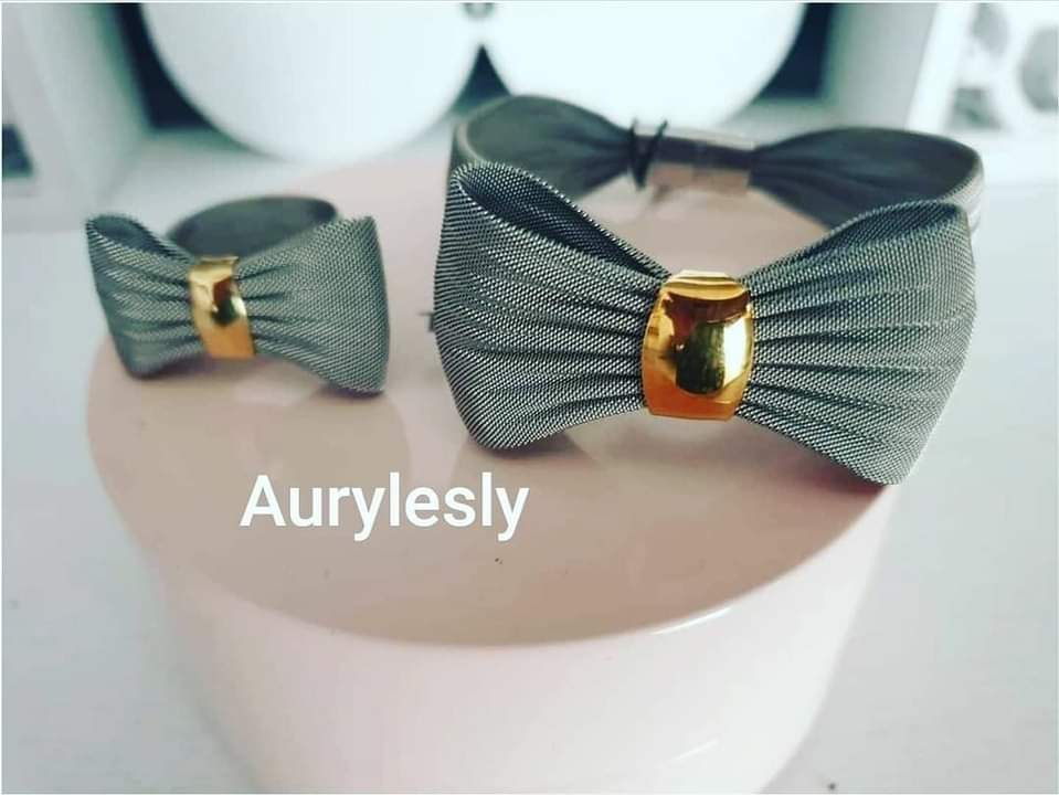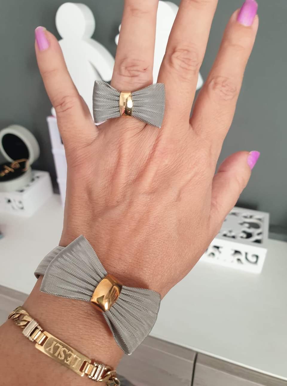 Set de pulsera brazalete lazo tull y anillo num 14 de oro 18 kl