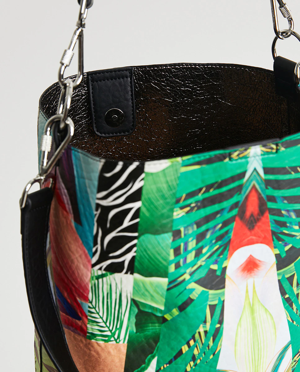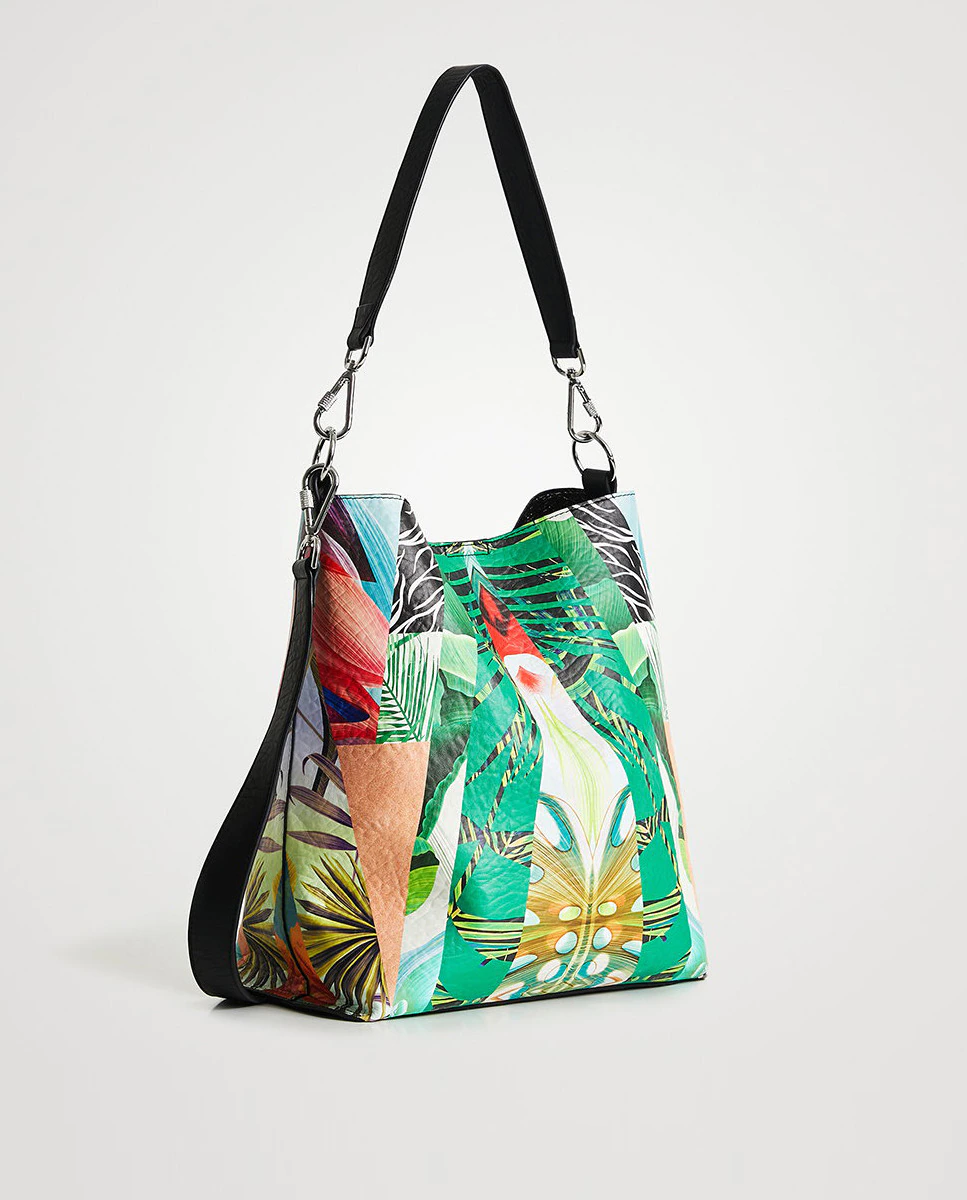 Bolso de hombro Virtual Pink Butan multifunción con estampado arty predominando los tonos verdes , MULTICOLOR.
