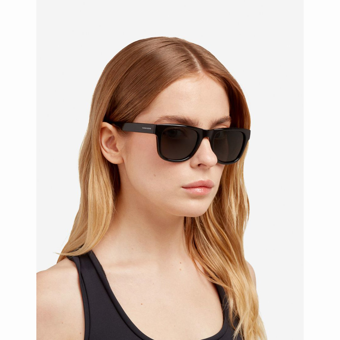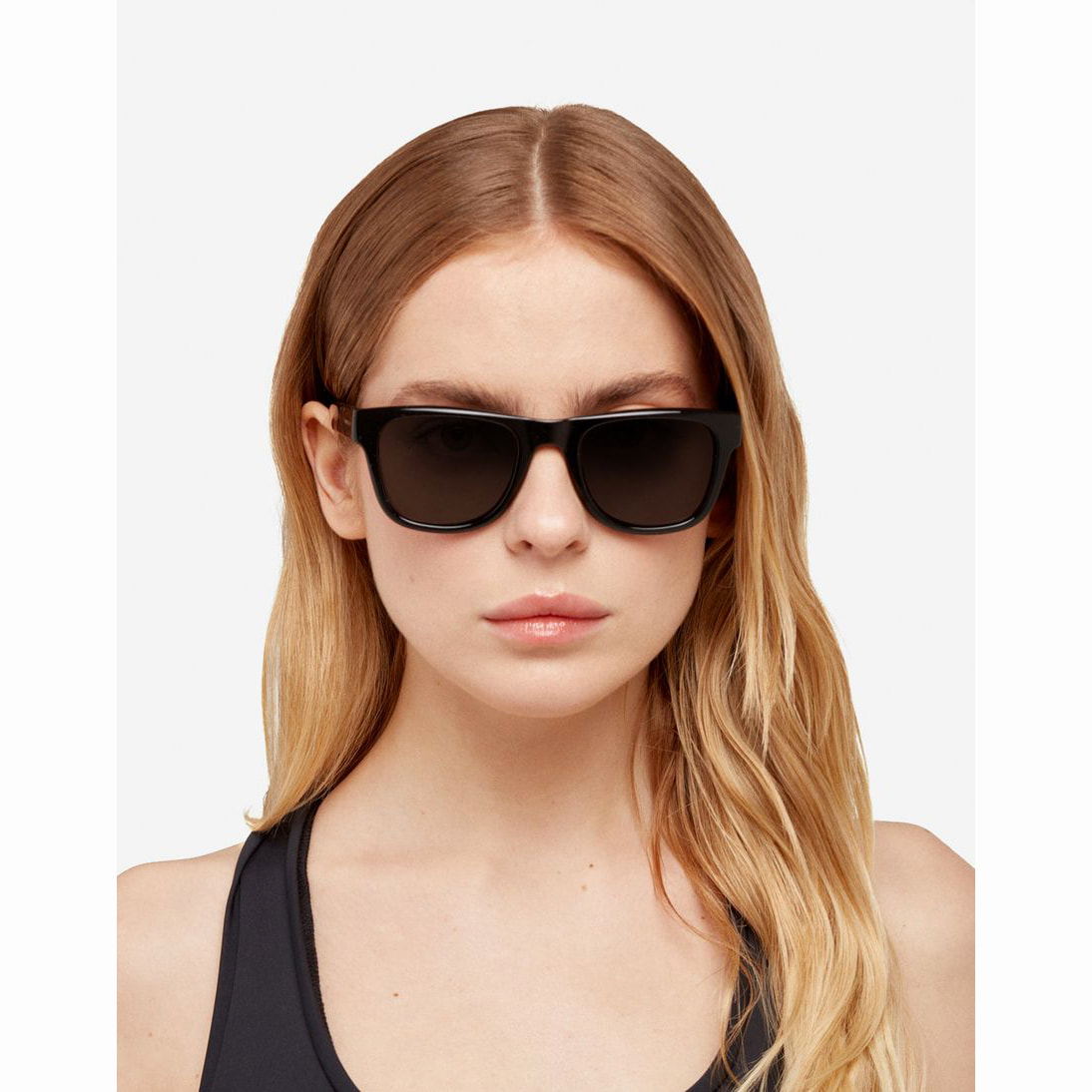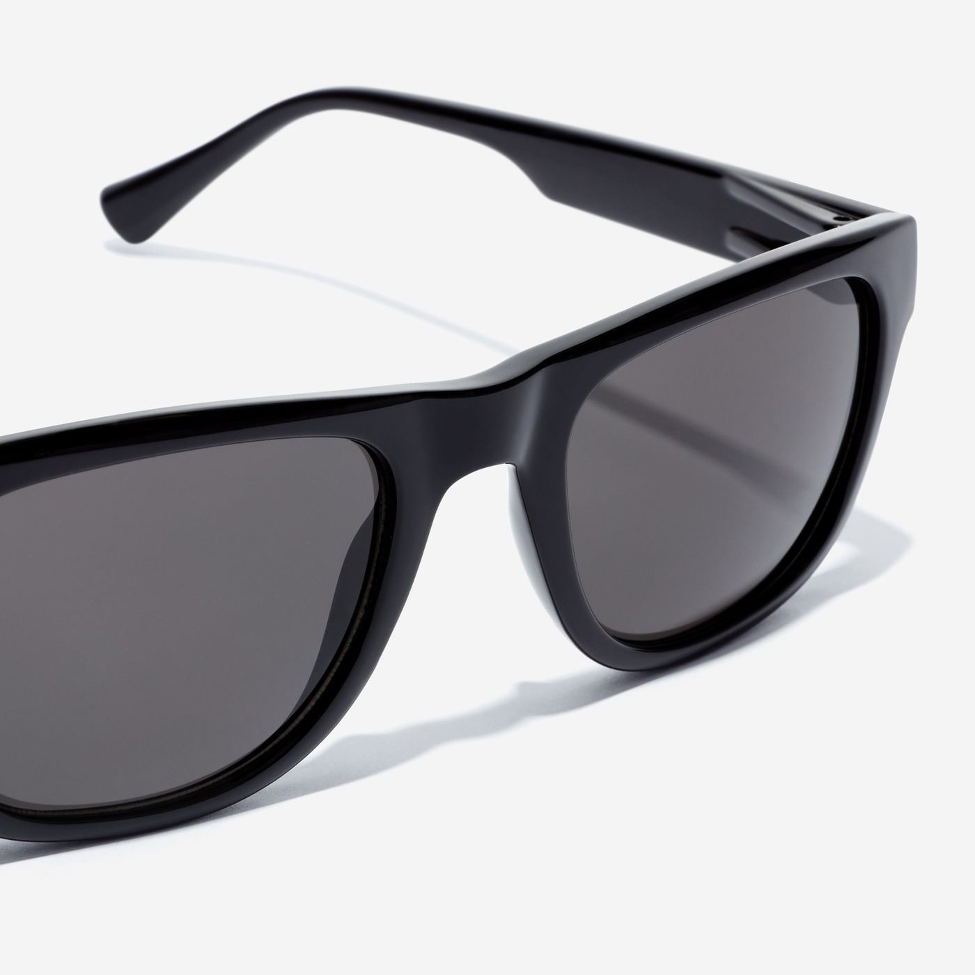 La versión polarizada de nuestro modelo Tox Diamond Black: montura en «negro diamante» de alto brillo con lentes oscuras. Un diseño clásico y cuadrado, con puente en forma de silla de montar, bordes delgados y patillas elegantemente estilizadas