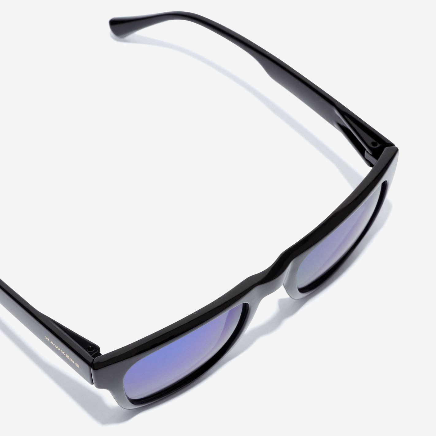 Un diseño clásico de gafas de sol con frontal cuadrado, puente de silla de montar y patillas estilizadas