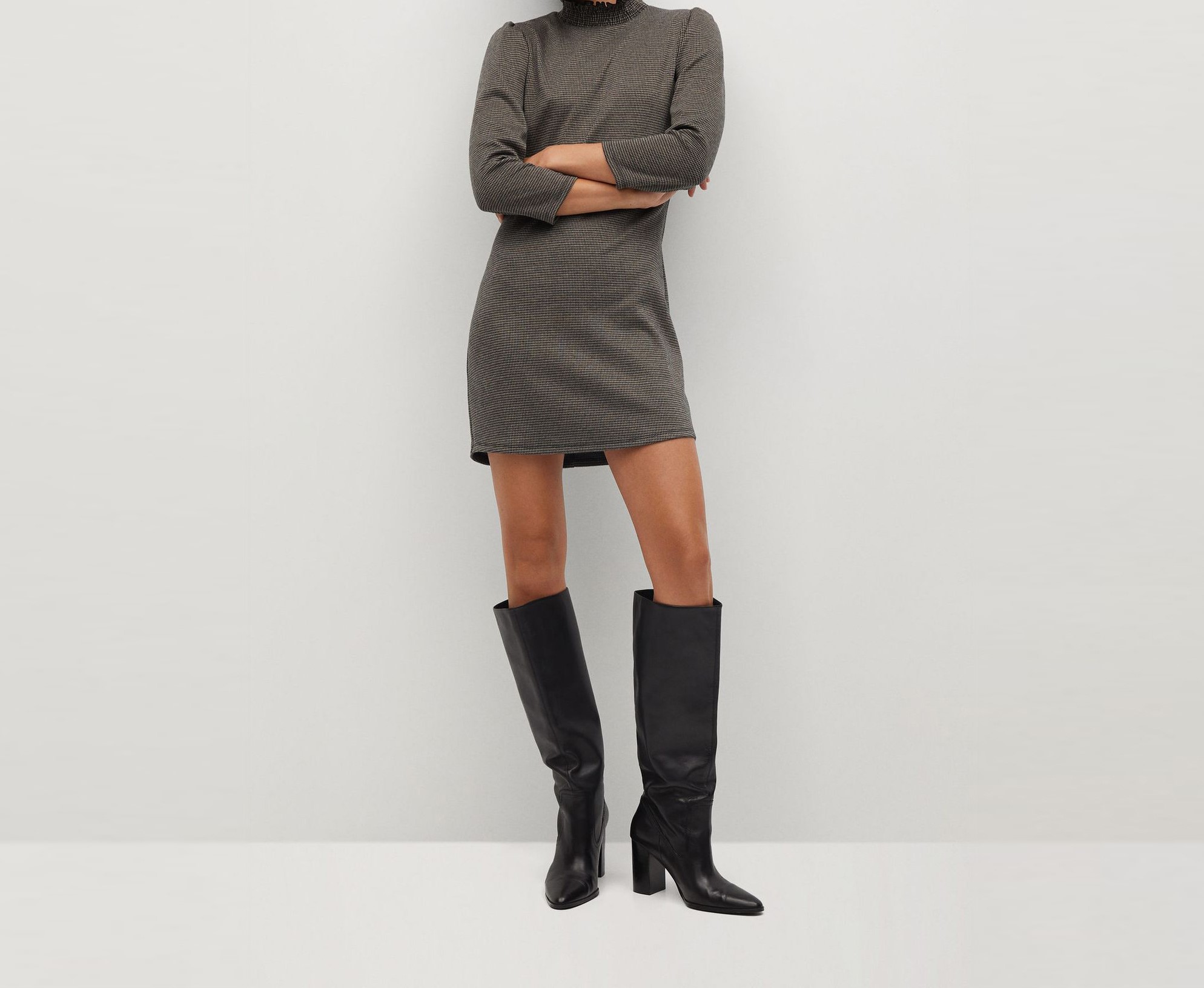 Z/VESTIDO CUELLO ANGELO-MARRON-TALLA M- MANGO