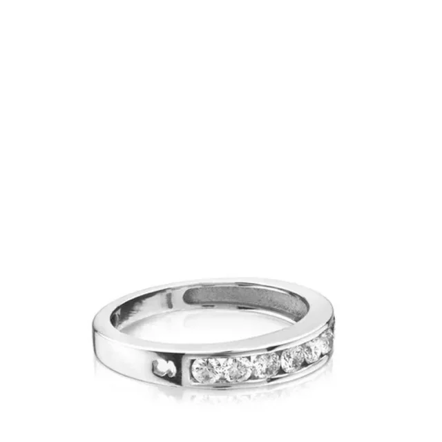 Media alianza TOUS Les Classiques en oro blanco de 18kt y diamantes. Peso total: 0,18ct. Calidad diamante: H/SI.