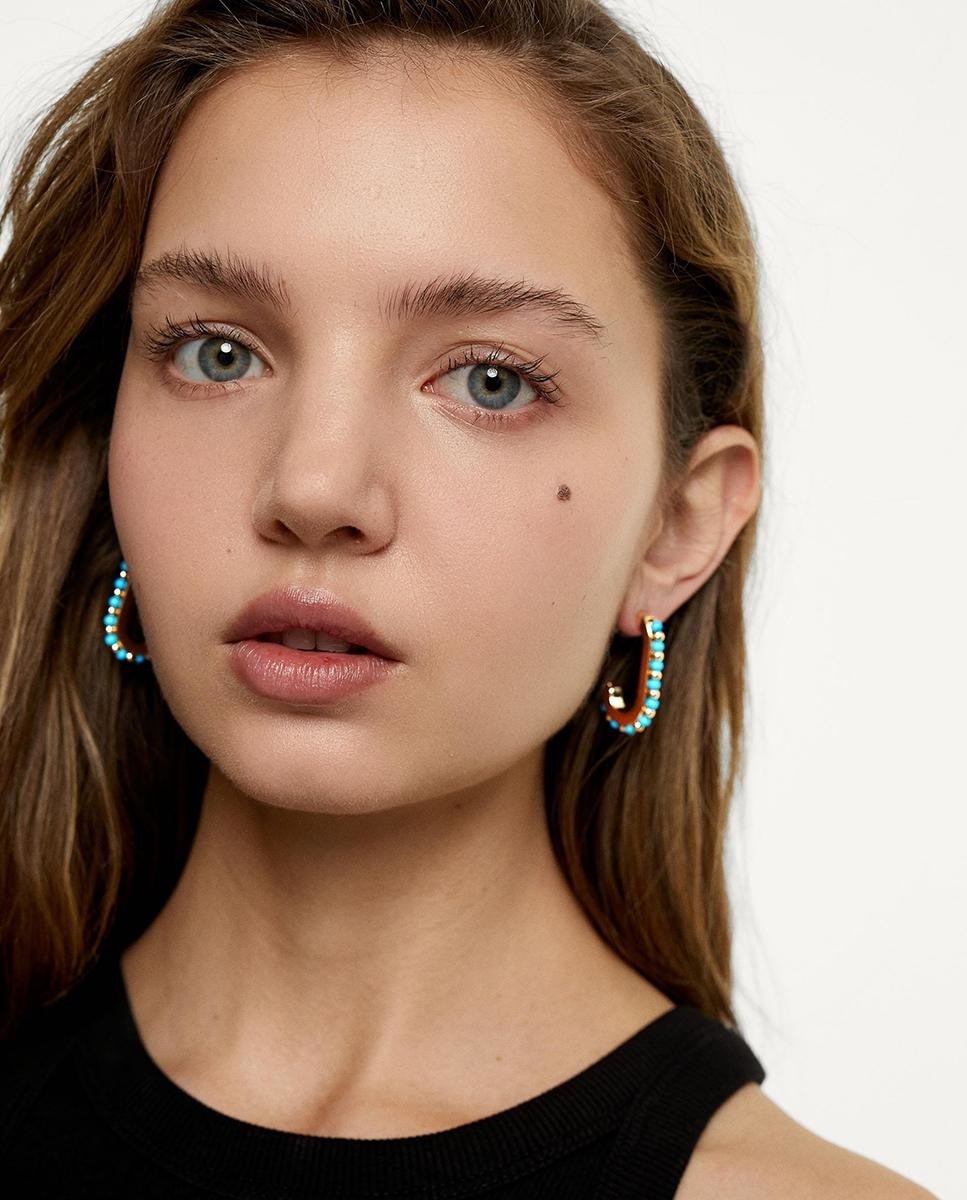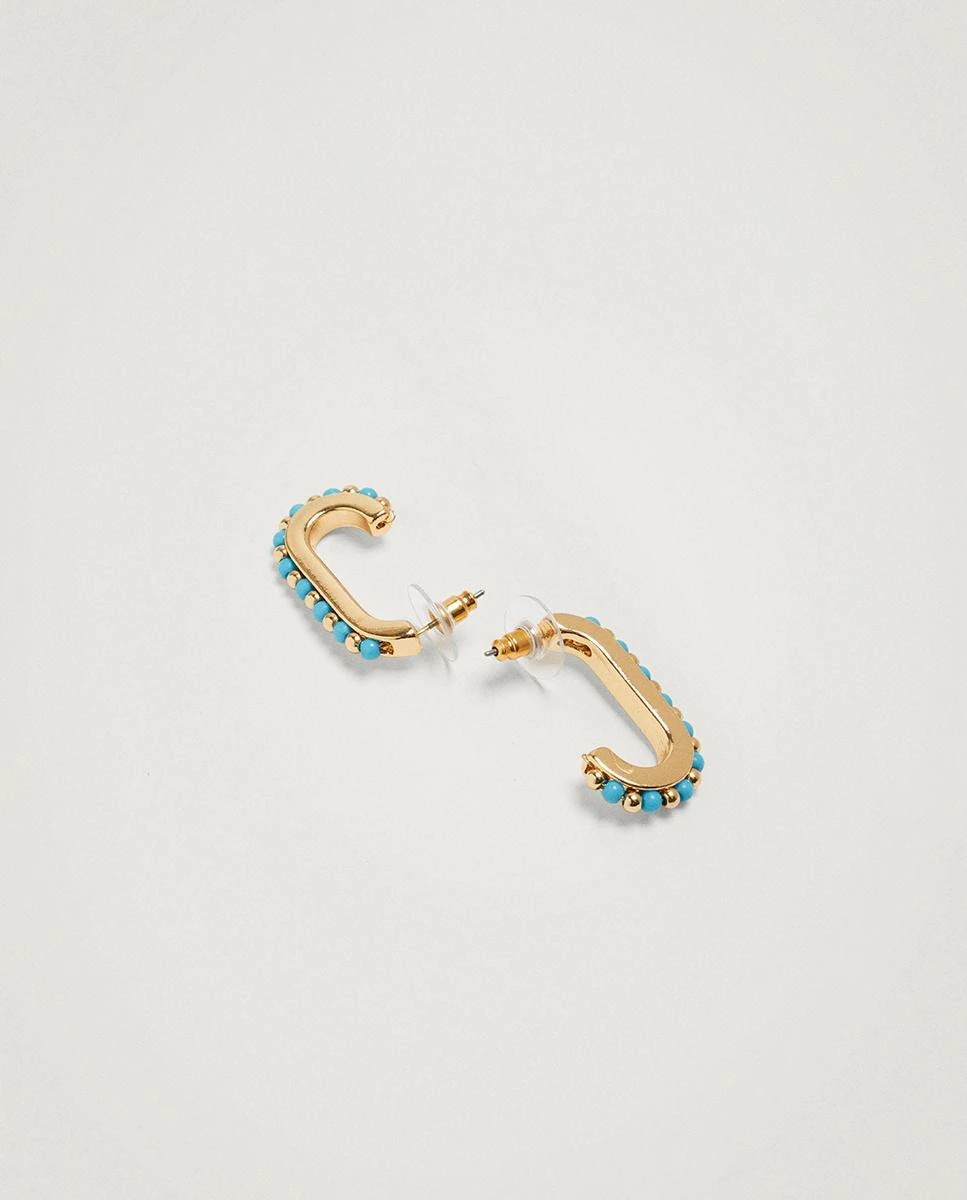 Z/PARFOIS J PENDIENTES DORADOS FORMA RECTANGULAR COLOR TURQUESA.