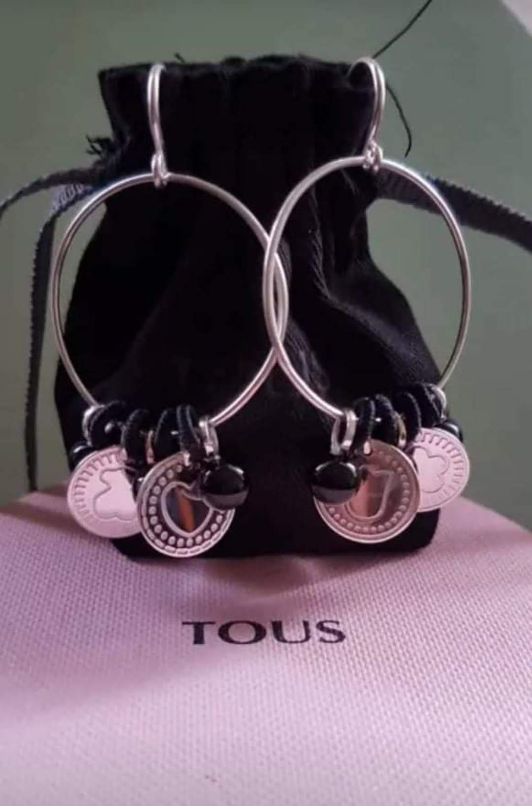 Pendientes en forma de argollas plata y onix tous