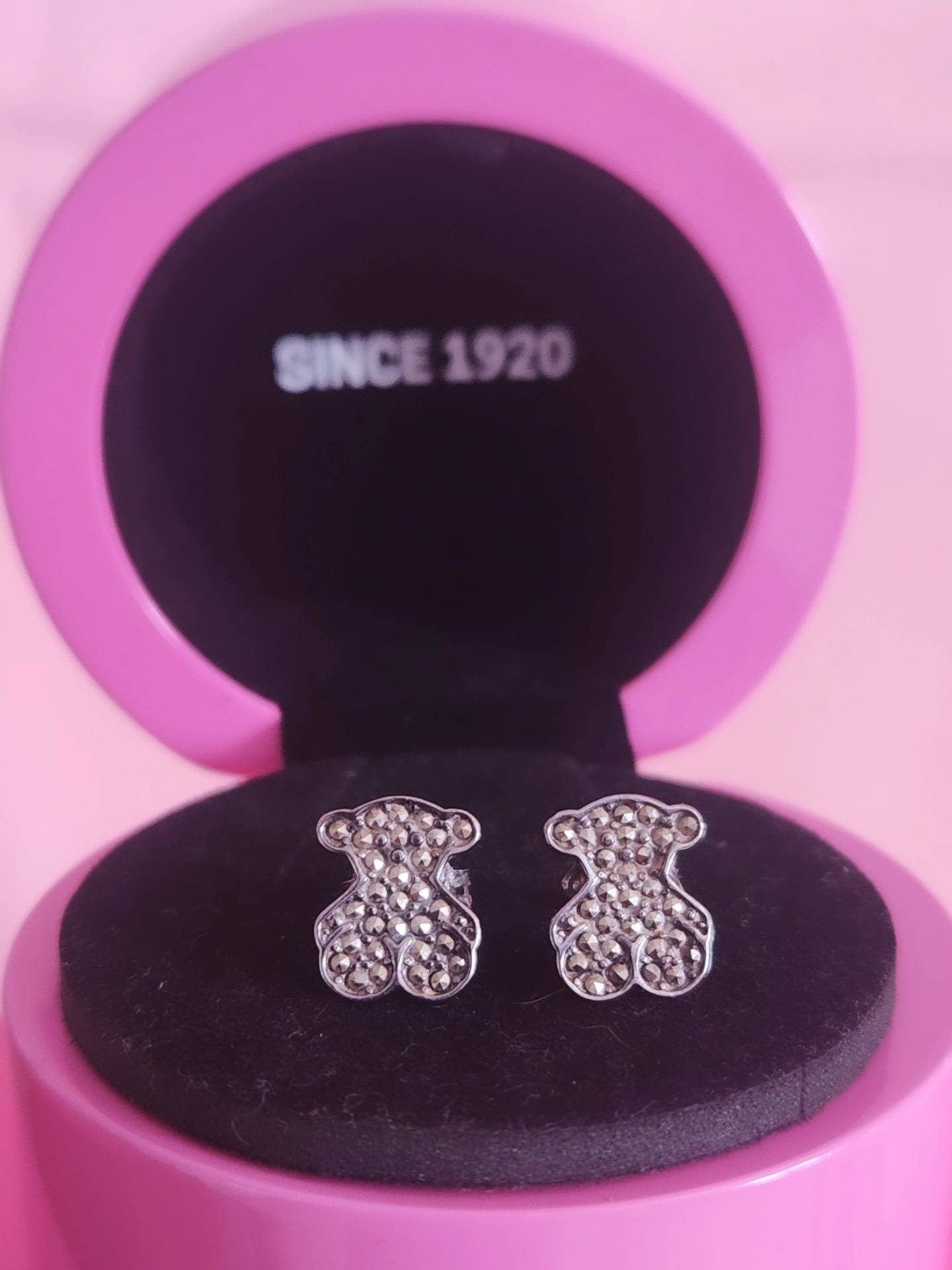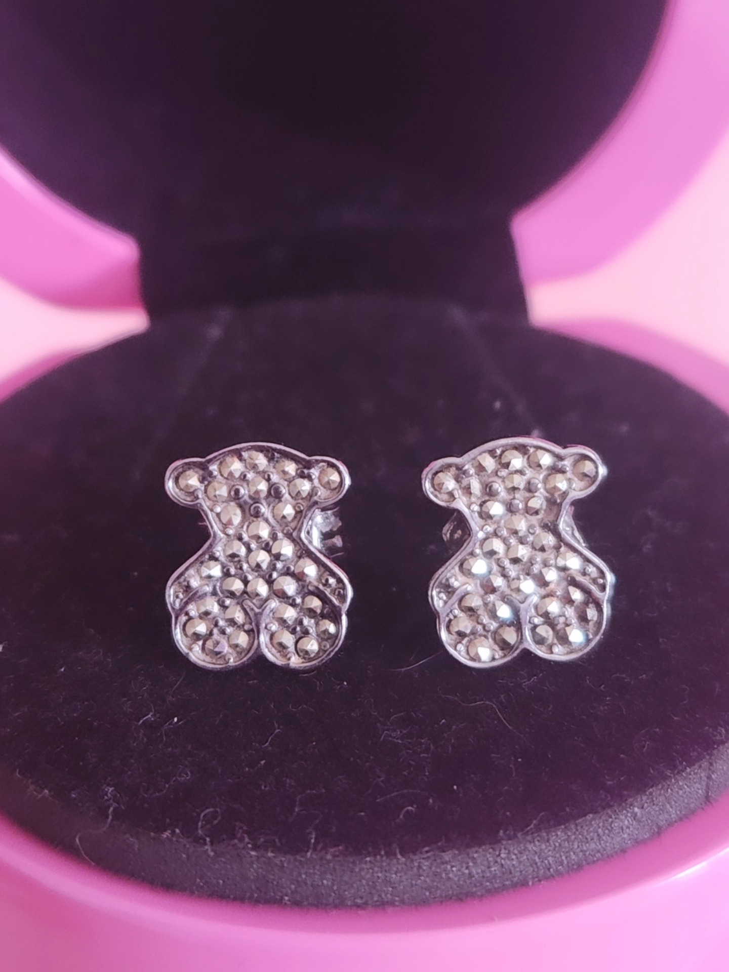 Pendientes TOUS Grace en plata de primera ley y marcasita. Cierre presión. Motivo: 1,1 cm.