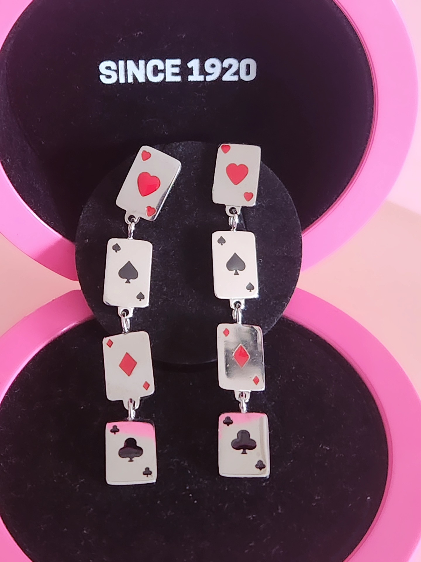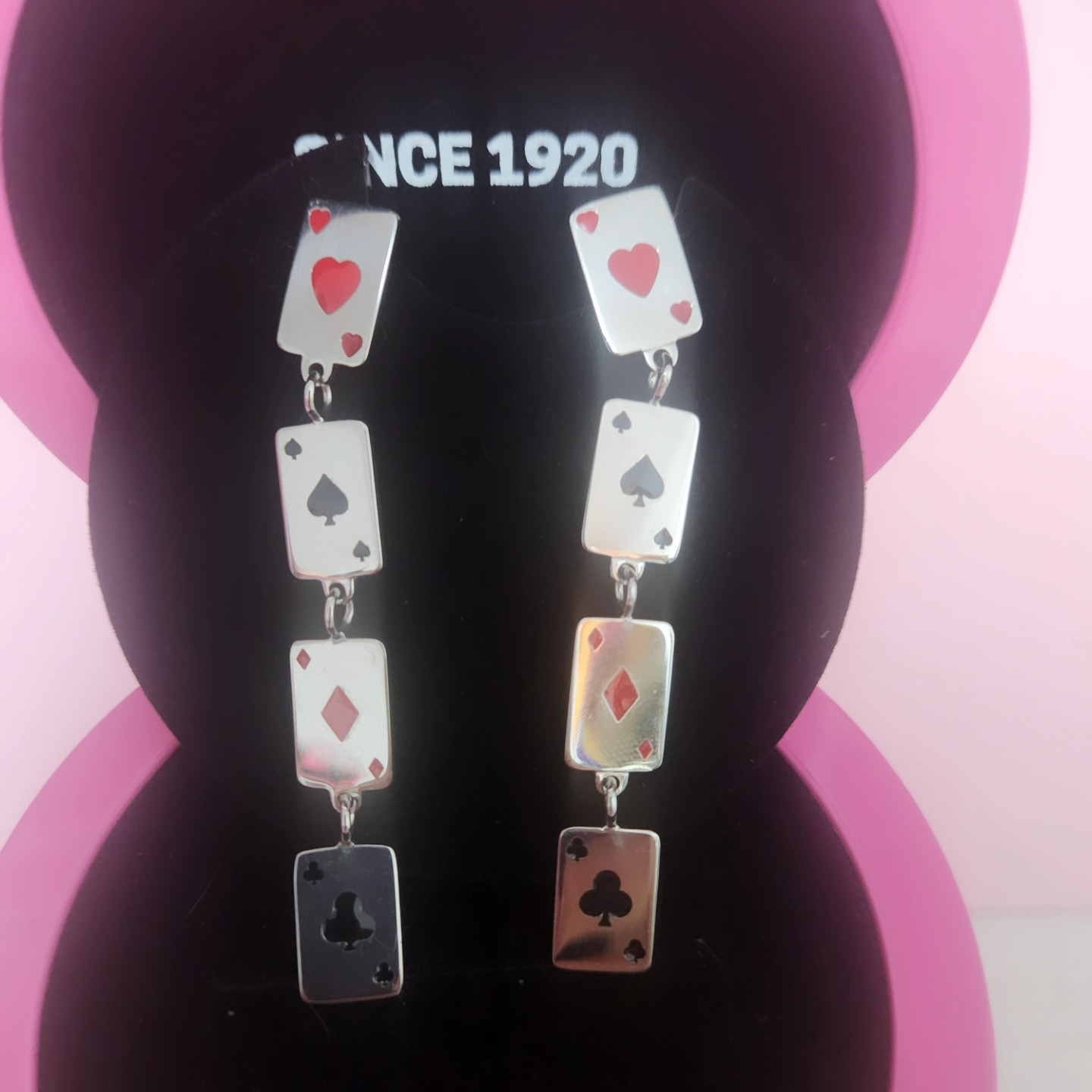 Coleccion Azar de Eugenia Martinez de Irujo de Tous, elaborado en acero y esmalte rojo negro y vienen firmados por detras con Eugenia Martinez de Irujo . Corresponden a la segunda campaña hecha por Eugenia para Tous . Se trata de una coleccion inspirada en las cartas de una baraja de Poker . Impecables sin estrenar . Agotados en las primeras ventas ya que eran piezas limitadas.