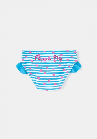Culetín de baño, con rayas y estampado de personajes Peppa Pig, forro interior y con volantes en el lateral, para bebé niña. Poliéster:85% Elastano:15% Forro interior: 100% Poliéster